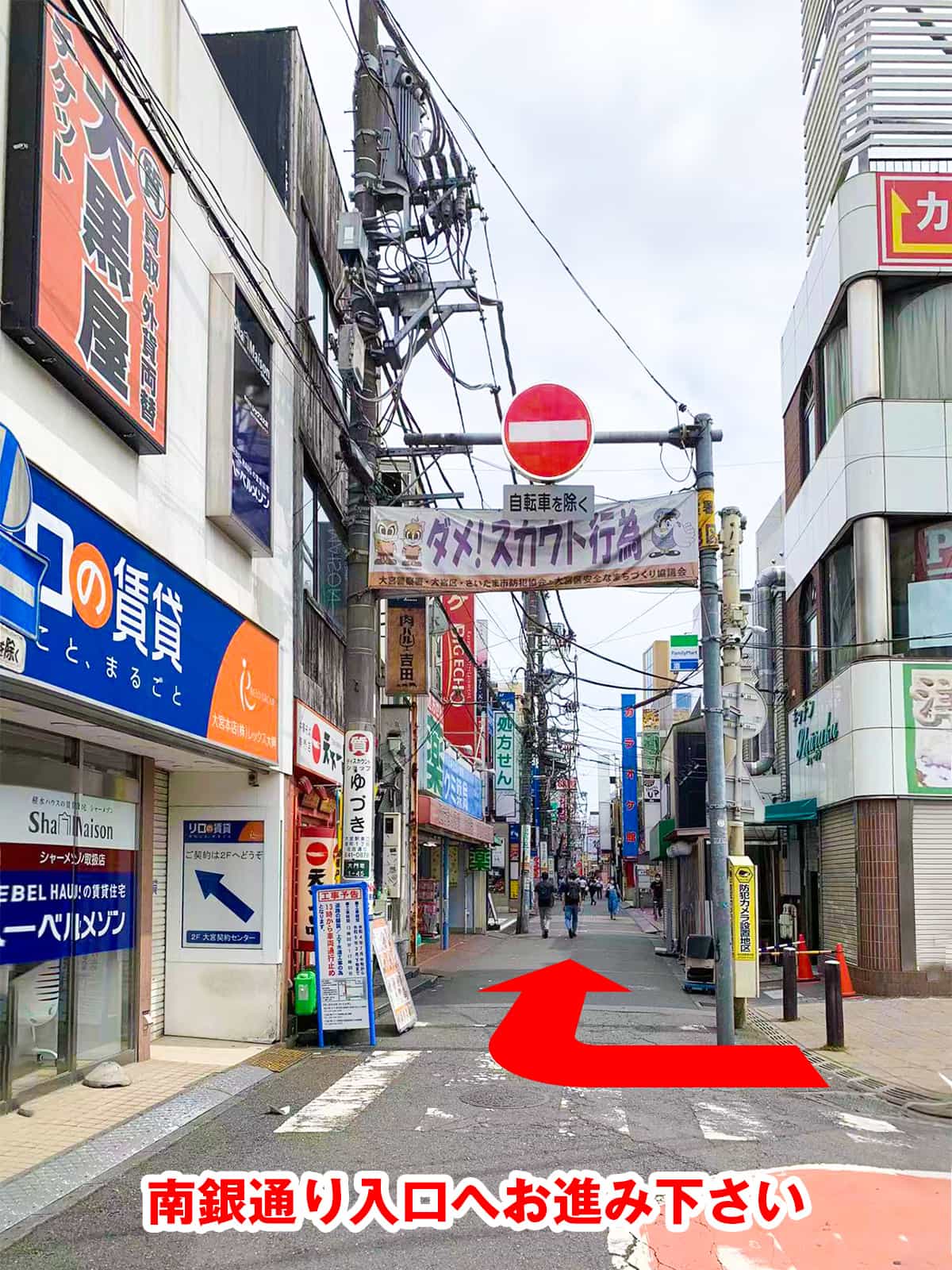 ①格安駐車場のNPCに止めましたら、駐車場を背にして左方向、高島屋の看板が見える方向に歩きます。ここからお店まで300m、4分ぐらいです。