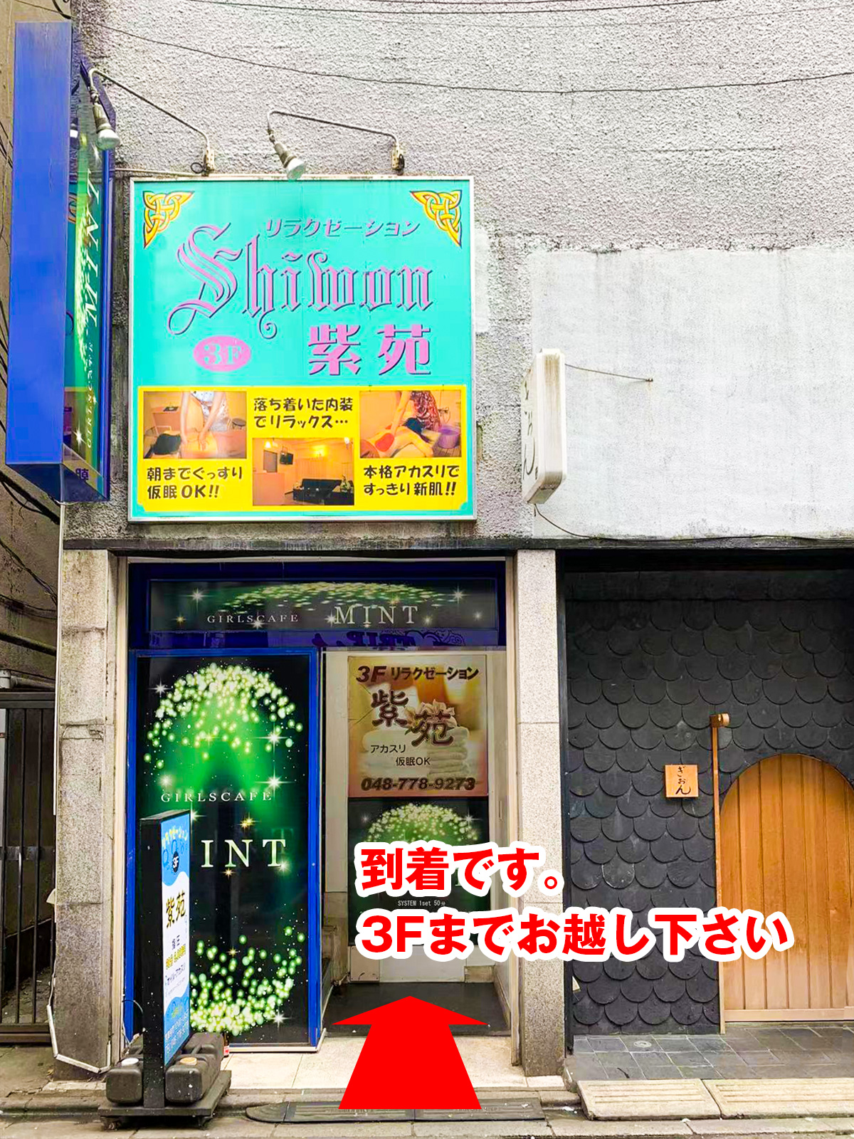 ④路上と入り口上に看板があります。ビルの3Fまでお越し下さい。